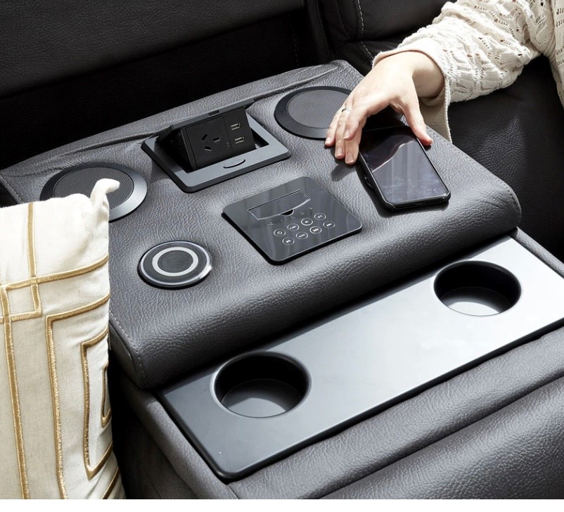 He has touch pad technology, cordless charging*, speakers, Bluetooth, USB, aux, headphone port, power point, LED, power recliners, power headrest, cup holders and dropdown console! Did we mention he’s instock????