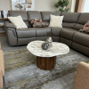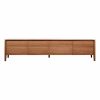 The entertainment unit has mid century design elements and features tapered floating tops and angled legs. These pieces show stunning grain throughout.