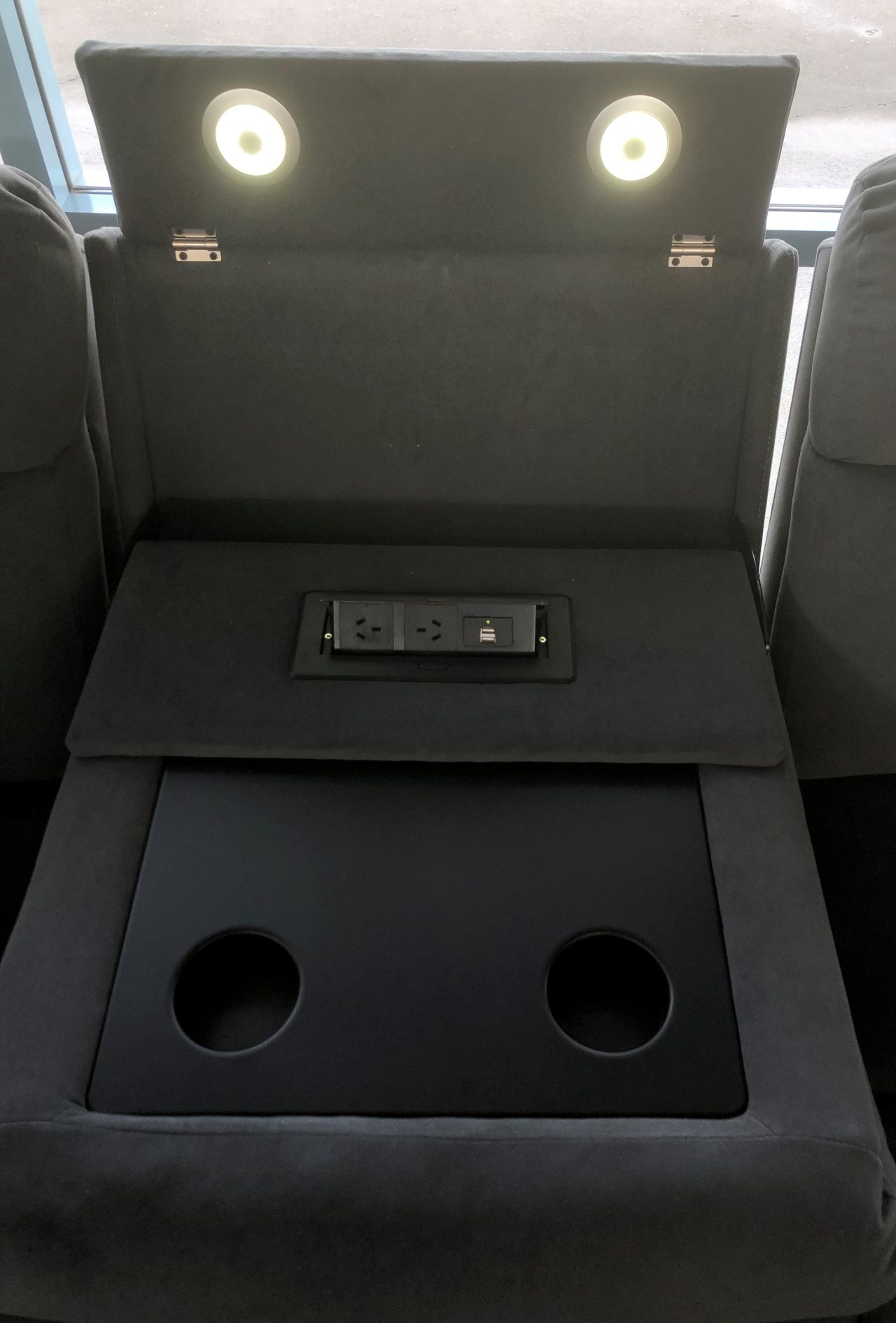 LED, Cupholders, Powerpoints, USB ports and 2 recliners